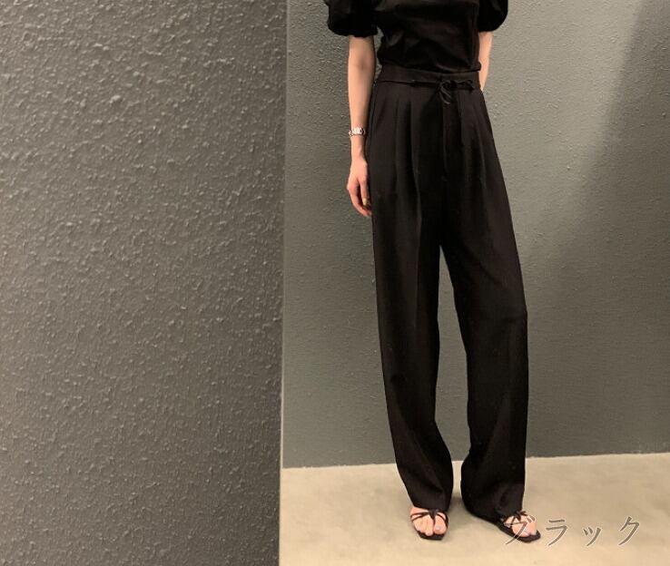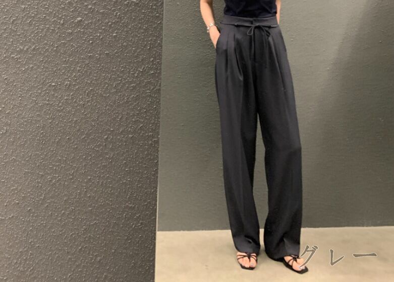 全3色 パンツ ハイウエスト 切り替え 体型カバー 着痩せ シンプル