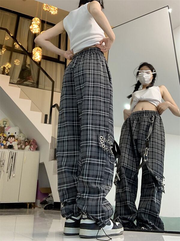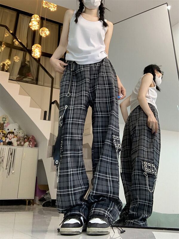 パンツ ハイウエスト 切り替え バイカラー 体型カバー 着痩せ チェック柄 カジュアル