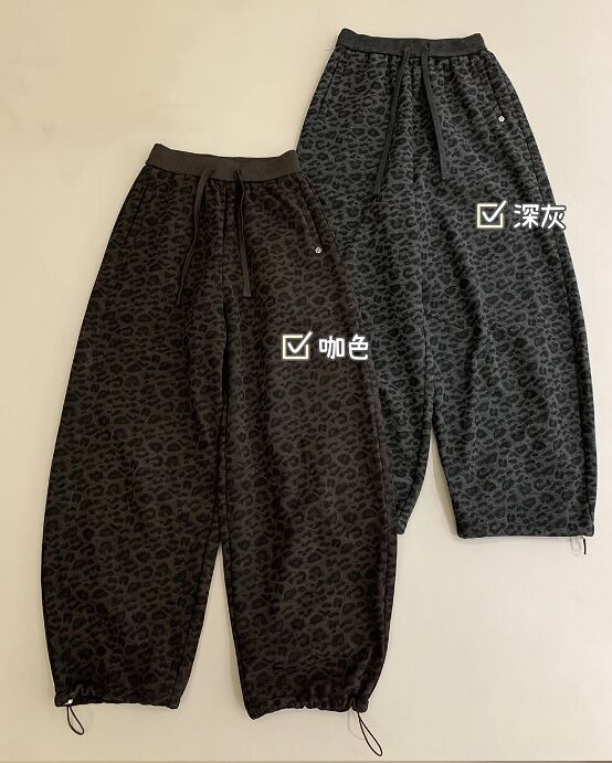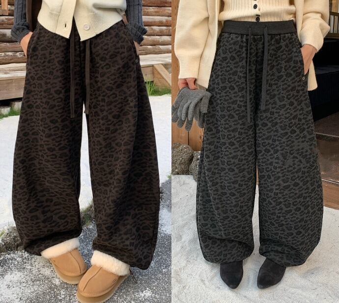 全2色 ワイド バギーパンツ 切り替え バイカラー 体型カバー 着痩せ レオパード柄 カジュアル