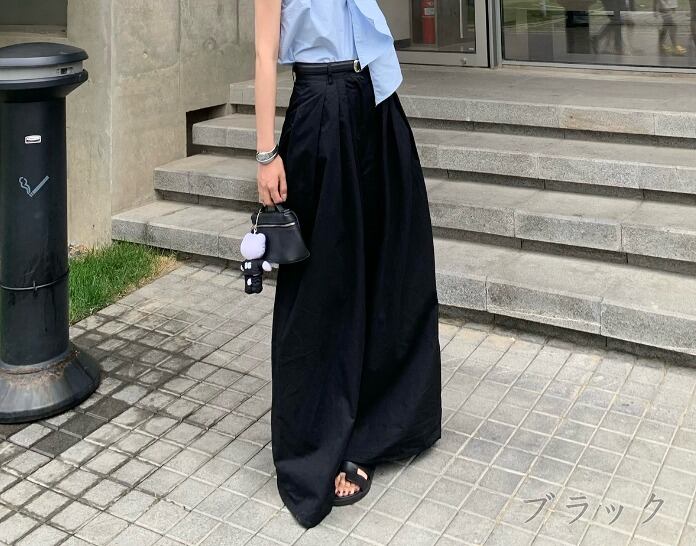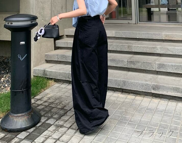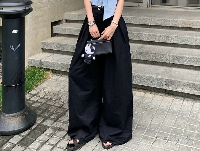 全2色 ワイド バギーパンツ 切り替え 体型カバー 着痩せ カジュアル