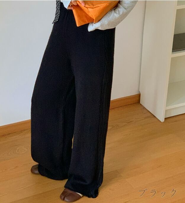 全5色 ワイド バギーパンツ 切り替え 体型カバー 着痩せ カットソー シンプル カジュアル