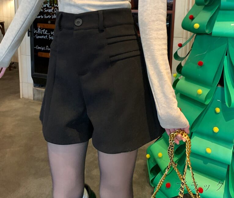 全2色 ショートパンツ ショーパン ハイウエスト 切り替え スリム 着痩せ シンプル