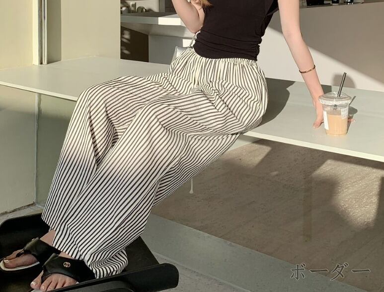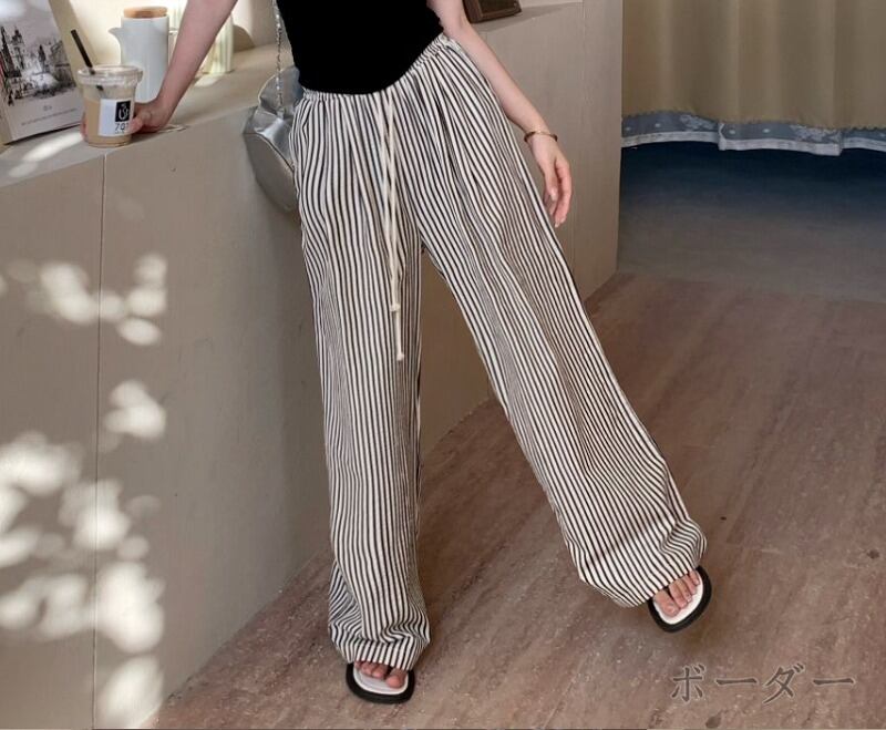 パンツ 切り替え バイカラー 体型カバー 着痩せ ストライプ柄 カジュアル