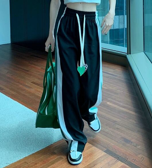 ワイド バギーパンツ 切り替え バイカラー 体型カバー 着痩せ シンプル