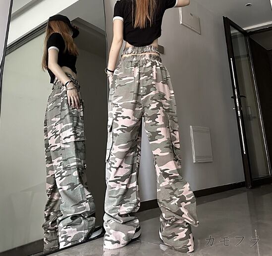 パンツ 切り替え バイカラー 体型カバー 着痩せ 迷彩 ミリタリー シンプル