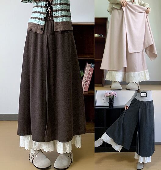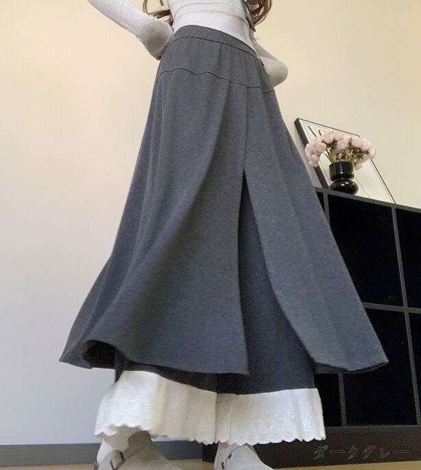 全3色 キュロット フリル 切り替え 体型カバー 着痩せ カジュアル
