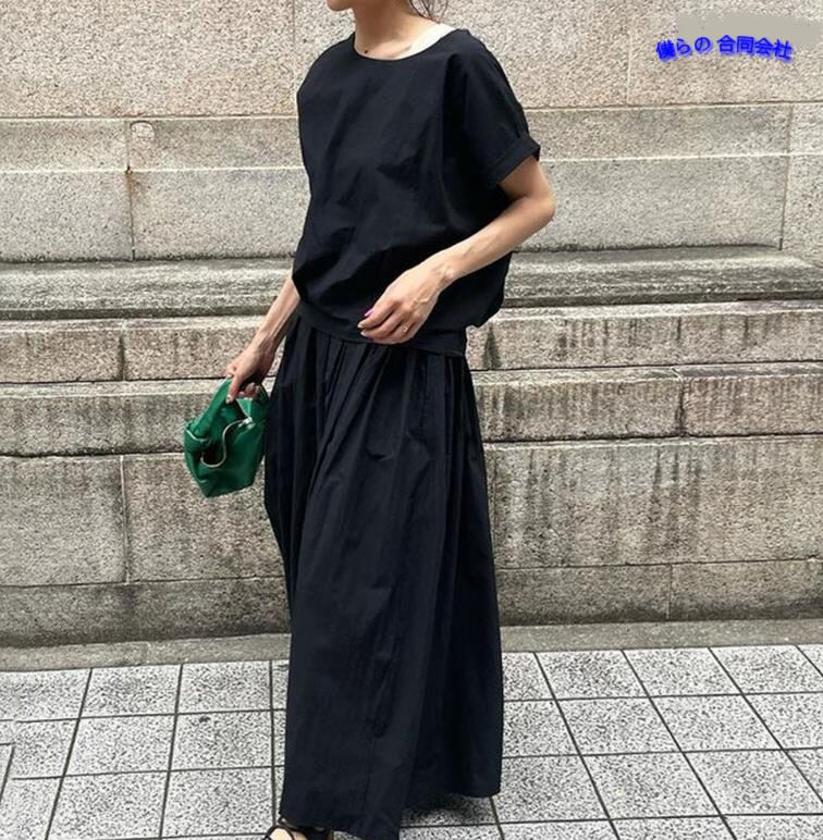 日系 レディース服 綿麻製 大人気 シンプル はんそで スカ一トズボン 2点セット 2色展開