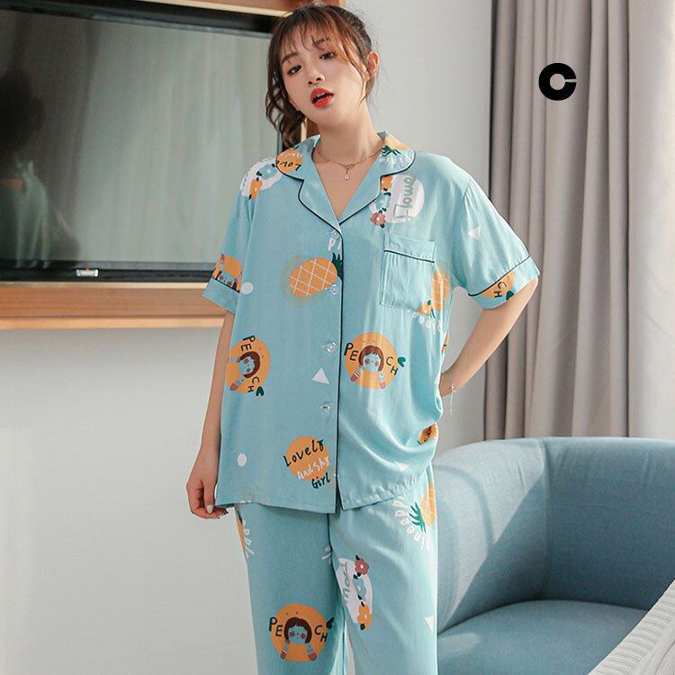 上下セット パジャマ レディース 夏 半袖 花柄 可愛い 長ズボン レディースルームウエア 2点セット