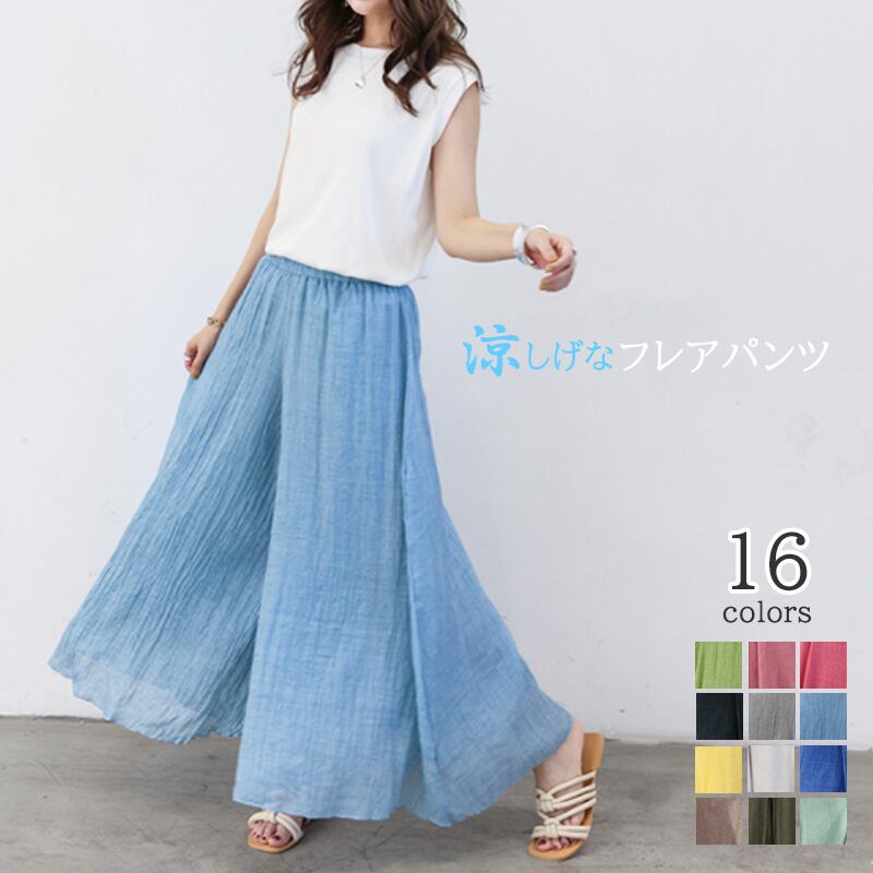 2022新作 ワイドパンツ 長ズボン 体系カバー フレアパンツ ロング ゆったり 脚長 ウエストゴム