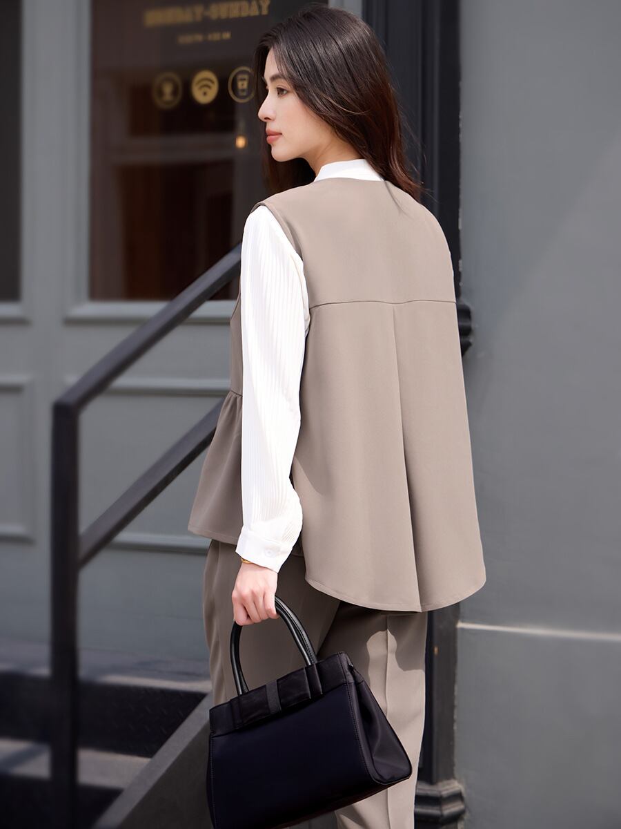 UC0678 レディース ベストコート+ズボン パンツ 無地 二点セット 通勤 韓国風 3色 2026春新作