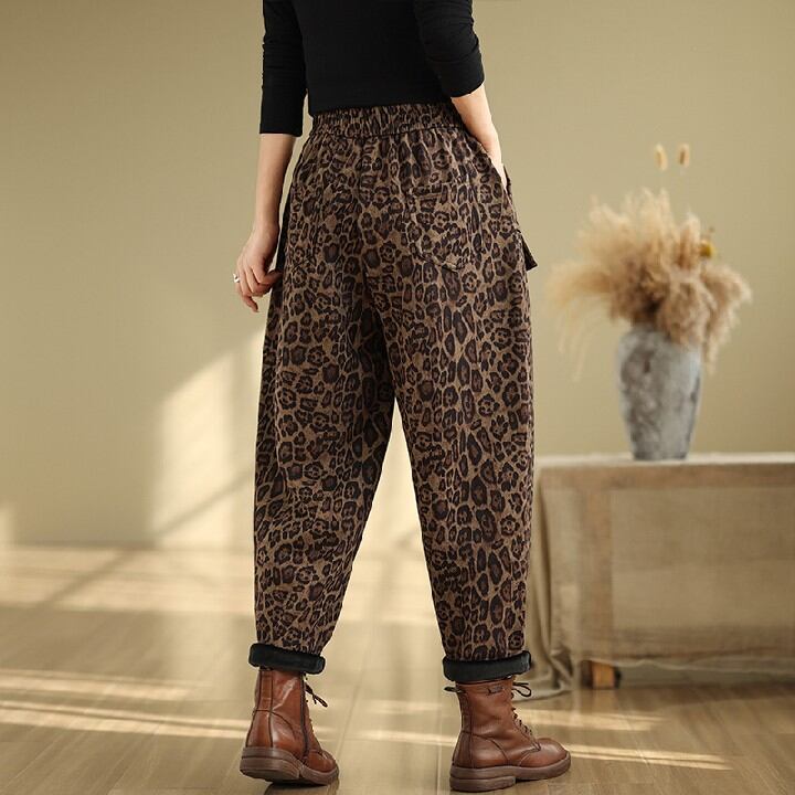 初回送料無料 秋冬レディースファッション カジュアル ヒョウ柄 ゆったり ハーレムパンツ 人気