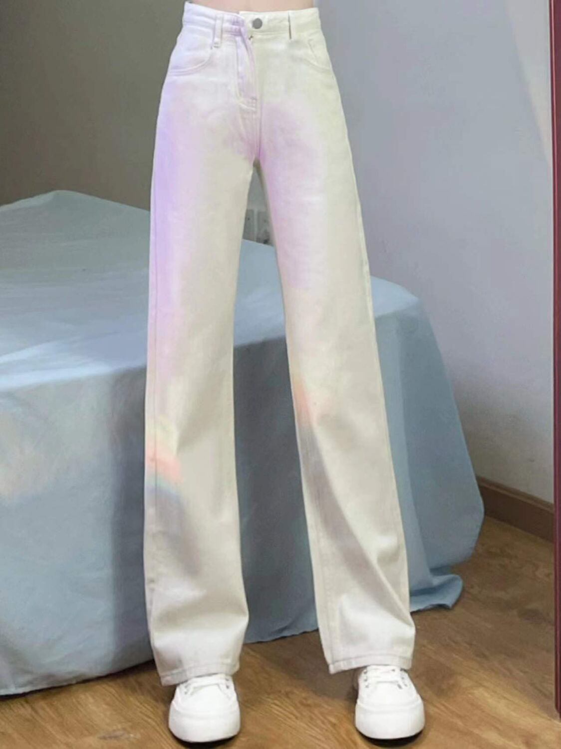 ホワイトジーンズ 春秋新作 ハイウエスト 真っ直ぐ ワイドレッグパンツ ゆったりしたズボン