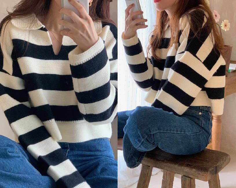 今季マストバイ INS 韓国ファッション 気質 可愛い ストライプ柄 スウィート 長袖 セーター