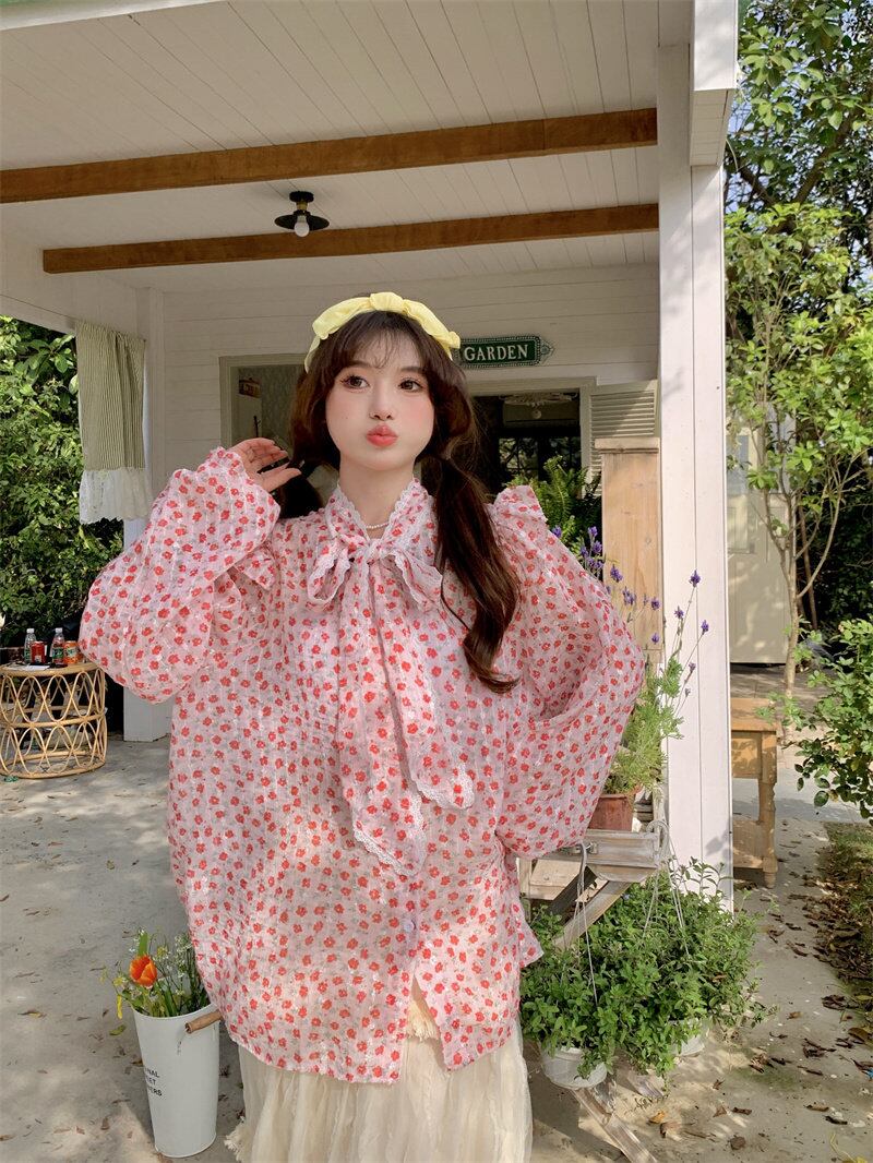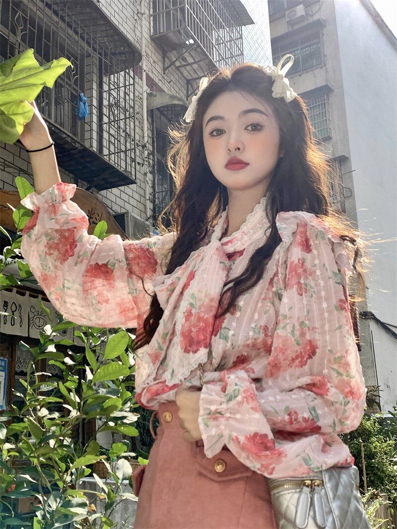 2023春INS★カジュアル 気質 パフスリーブ レース 可愛い シャツ/ブラウス