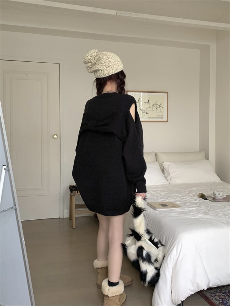 2022冬INS★ファッション レトロ おしゃれ エレガント リボン結び ニット セーター