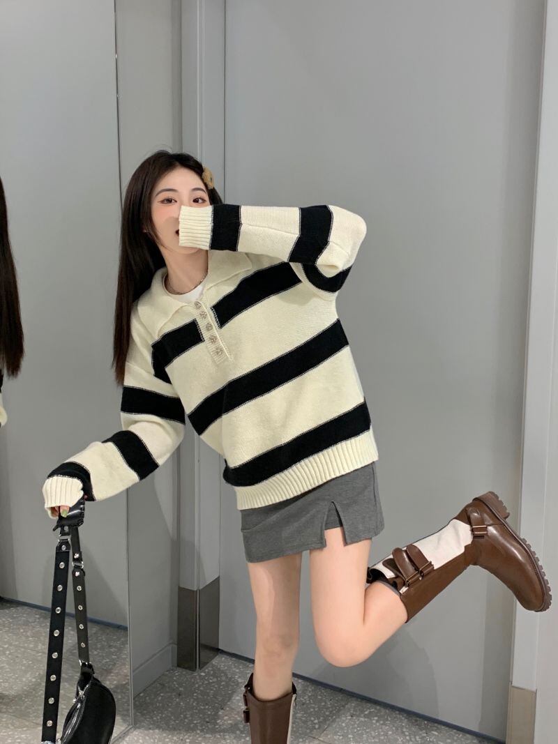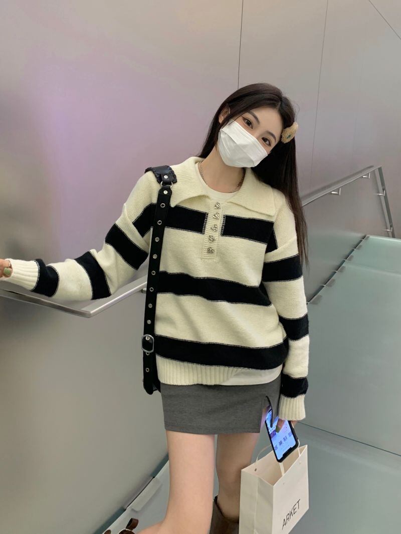 2022冬INS★ファッション性抜群 キャンパス スプライス 折り襟 ニットセーター