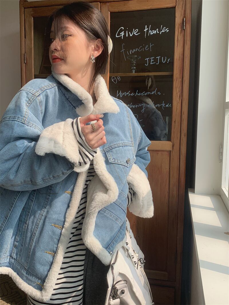 2022冬INS★ファッション おしゃれ スプライス デニム 防寒 コート