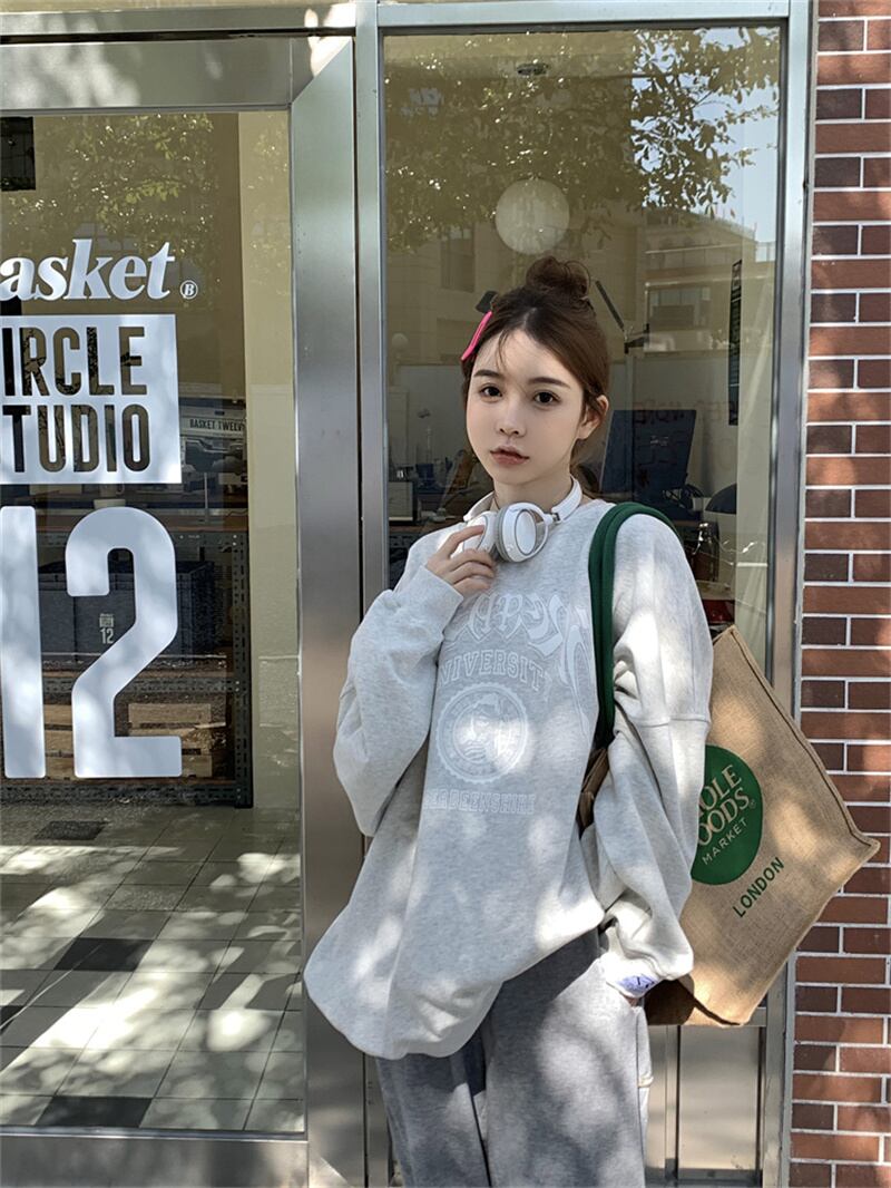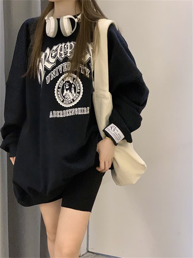 2022冬INS★気質 カジュアル アルファベット プリント ラウンドネック 長袖パーカー