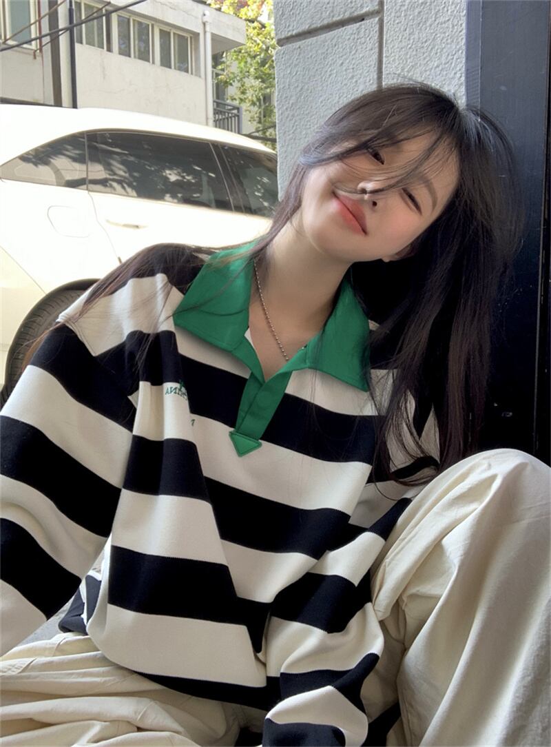 2022冬INS★気質 カジュアル レトロ 長袖 ストライプ 柄 キャンパス パーカー
