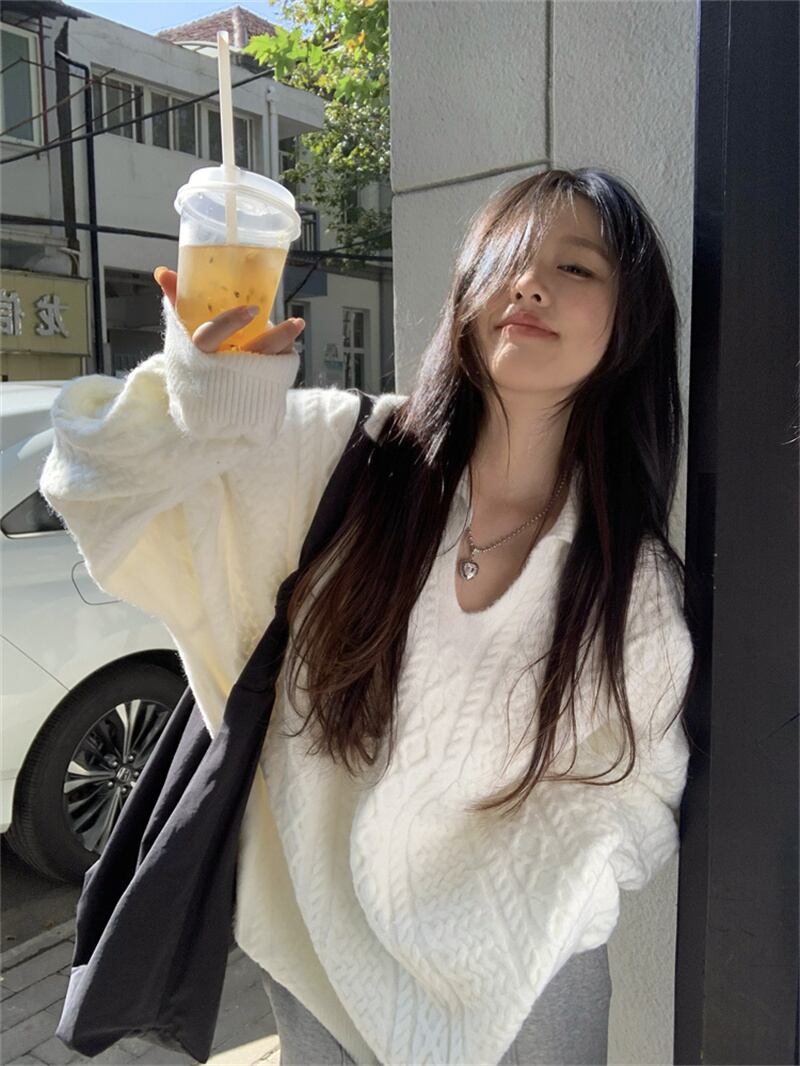 2022冬INS★気質 カジュアル レトロ 長袖 Vネック ツイスト模様 ニットセーター