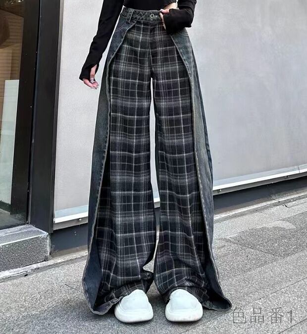 パンツ 切り替え バイカラー 体型カバー 着痩せ チェック柄 シンプル