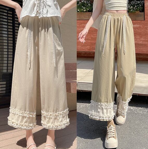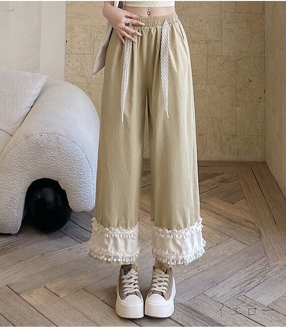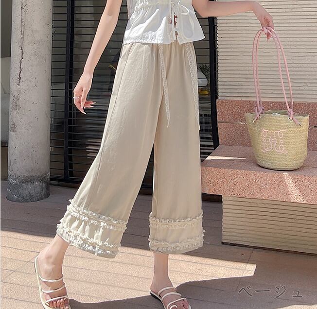 全2色 ワイド バギーパンツ 切り替え 体型カバー 着痩せ レース 【大きいサイズあり】 sweet系