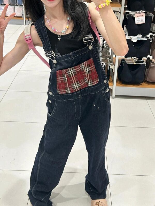 オールインワン オーバーオール ノースリーブ 切り替え 体型カバー 着痩せ 【大きいサイズあり】