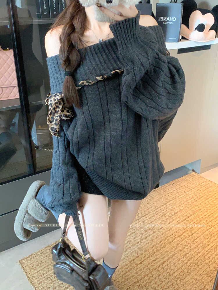 今季マストバイ 防寒 ニット 超可愛い 設計感 ヒョウ柄 ボートネック セーター