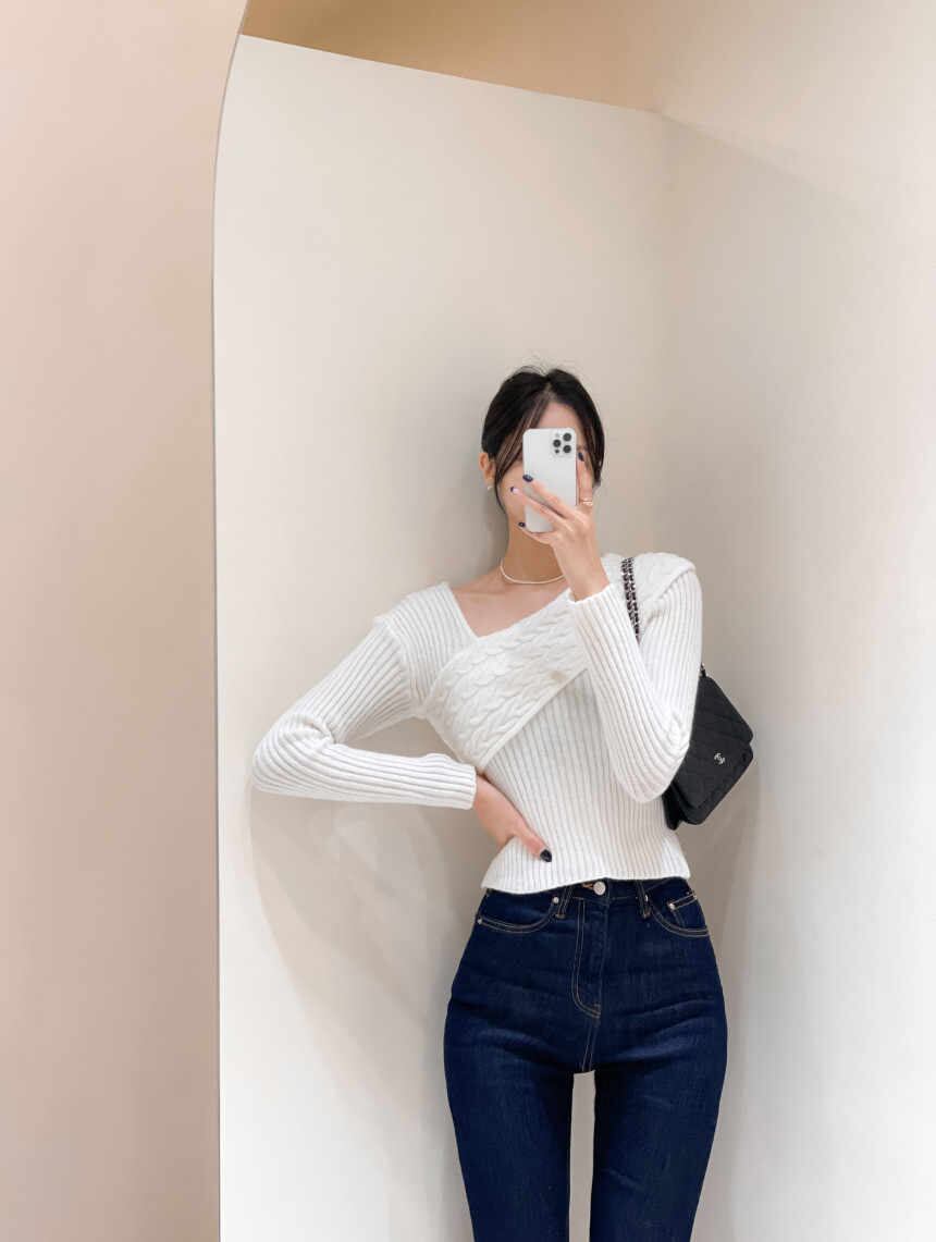今季マストバイ chic 韓国ファッション ベアトップ おしゃれ 着痩せ 設計感 カーディガン
