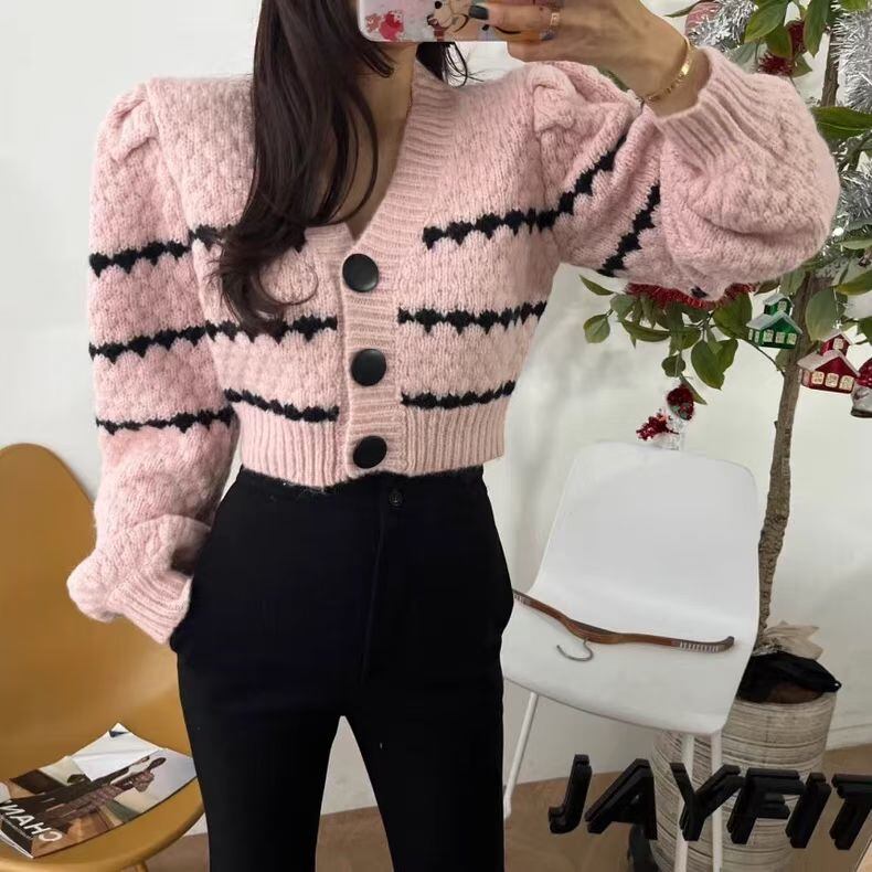 今季マストバイ ニットセーター カーディガン 可愛い パフスリーブ 優しい