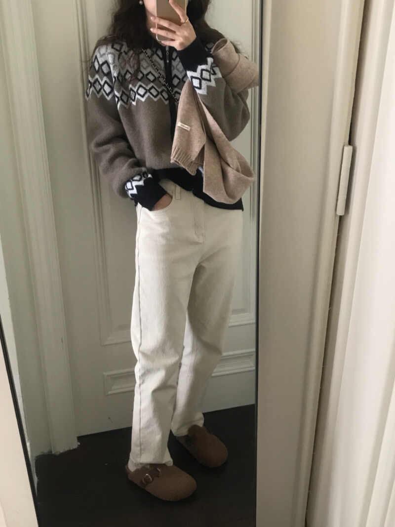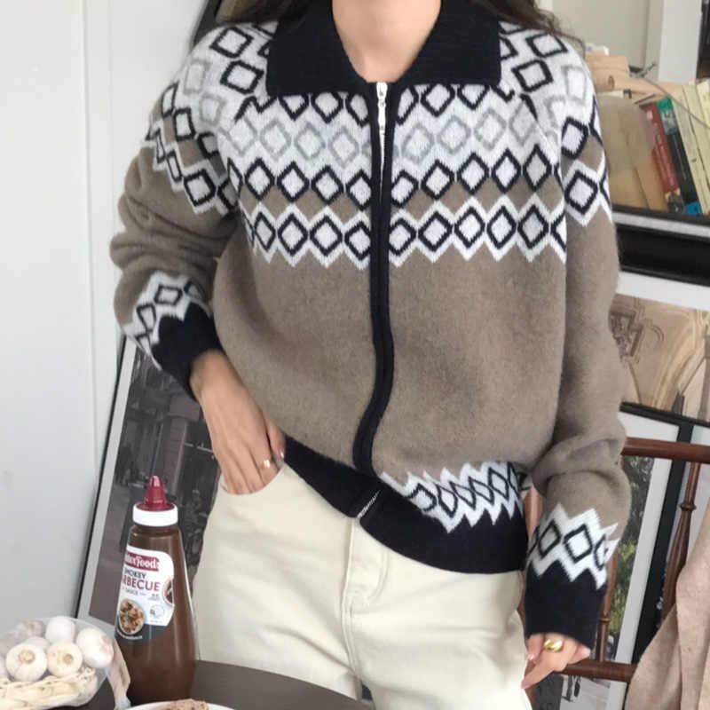 今季マストバイ 気質 トップス レトロ ニット カットソー アーガイル 折り襟 セーター カーディガン