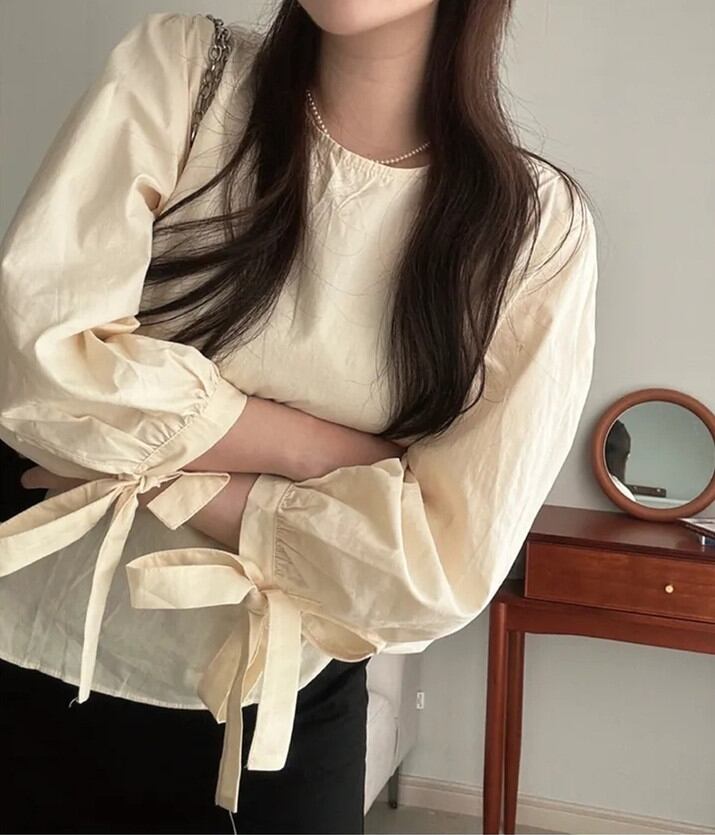 ブラウス シャツ 長袖ブラウス トップス レディース 2026年秋新作 ランタンスリープ ラウンドネック Sweet