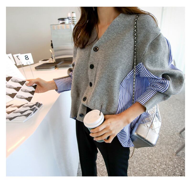 秋冬新作 カーディガン 偽の2点 レディース Vネックセーター トップス