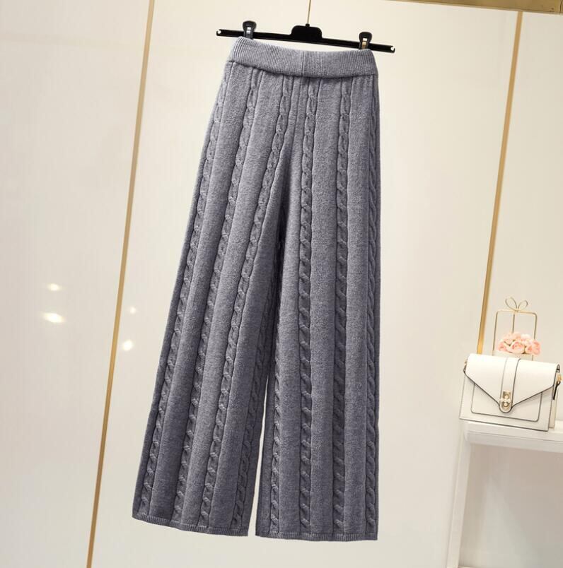 秋冬新作カジュアルスピーカー シンプルゆったりズボン ニットワイドパンツ レディースボトムス