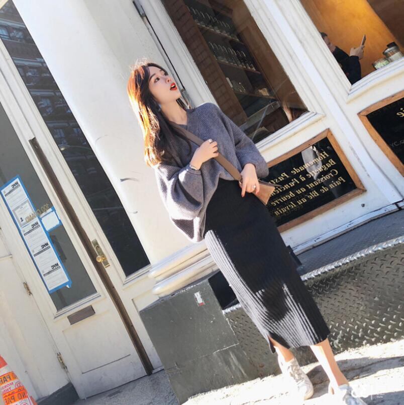ニットセット レディース 秋冬 きれいめ 膝丈ワンピース 無地 ニットセットアップ 長袖スカート
