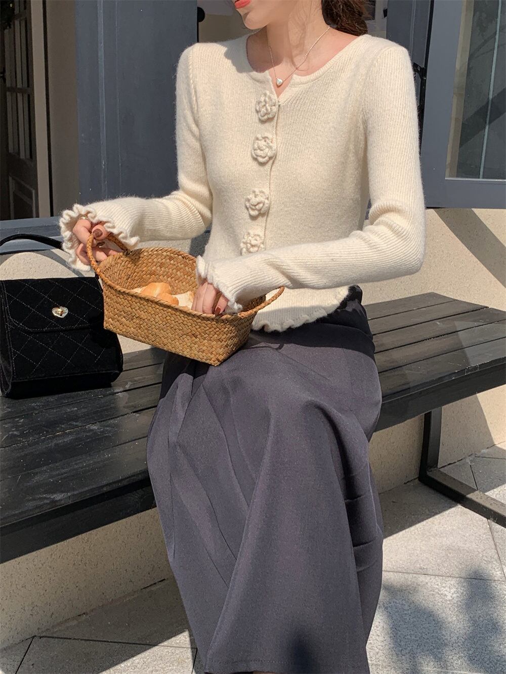2023秋INS新作★気質 韓国系 エレガント系 カットソー ニット セーター