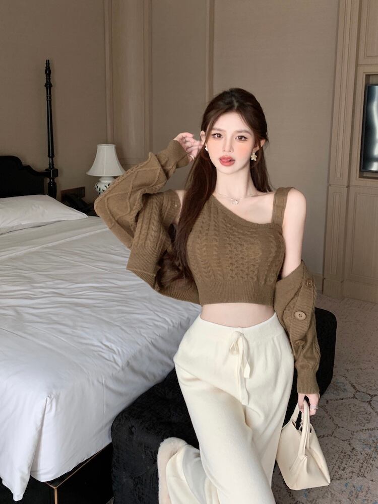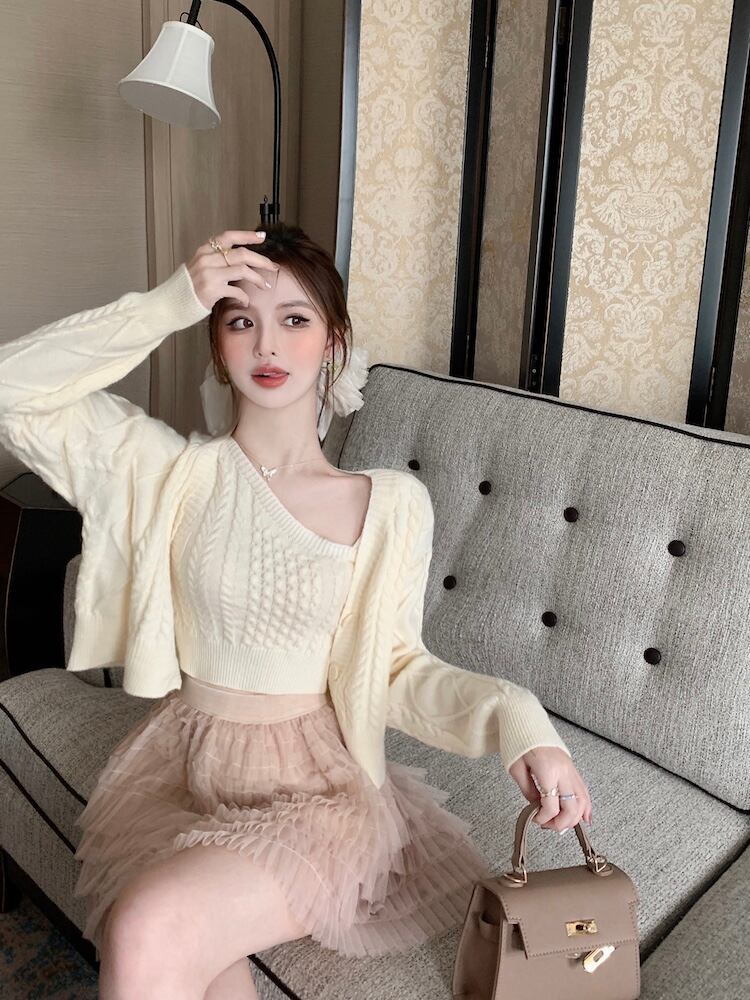 2023秋INS新作★設計感 気質 ベアトップ キャミソール+カーディガン セット