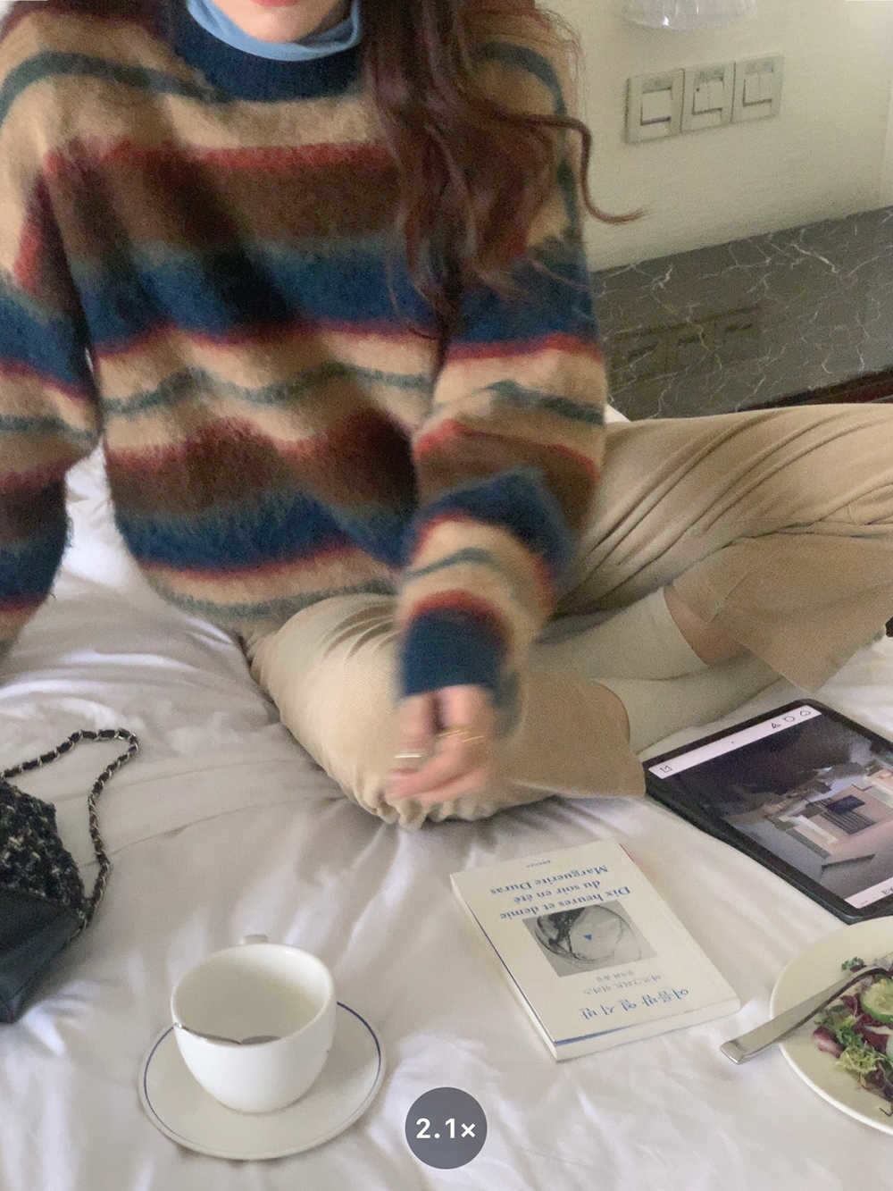 2023秋INS新作★カジュアル 韓国風 気質 ゆったり レトロ ストライプ 着心地抜群 セータ?