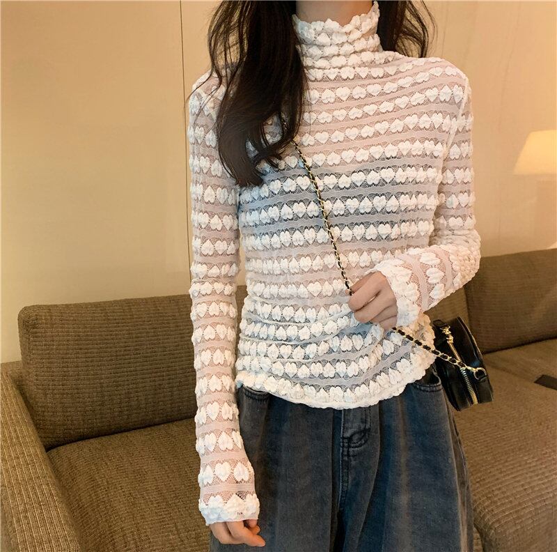 2023秋INS新作★トップス 気質 体型カバー 長袖 レース シャツ/ブラウス