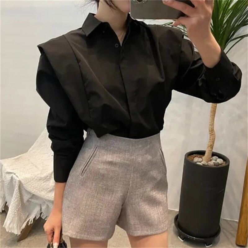 2023秋INS新作★カジュアル 韓国風 デザイン性 折り襟 シャツ/ブラウス