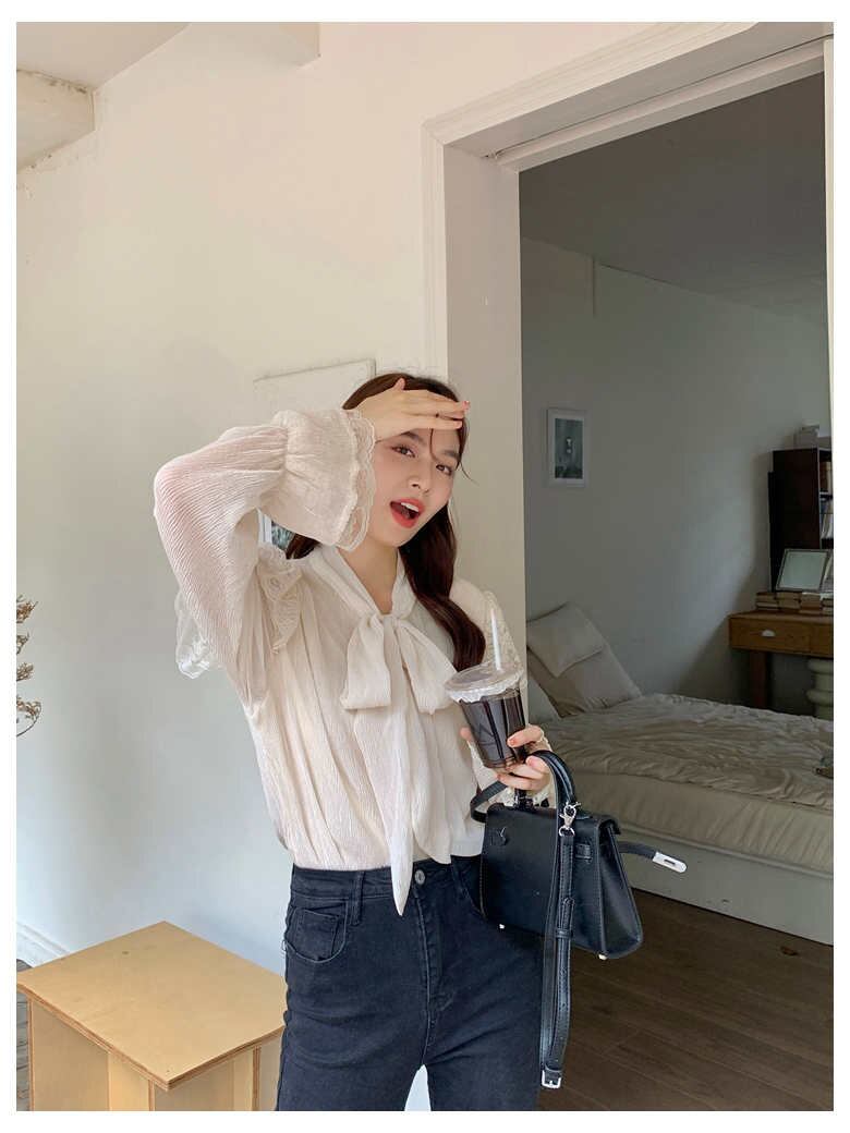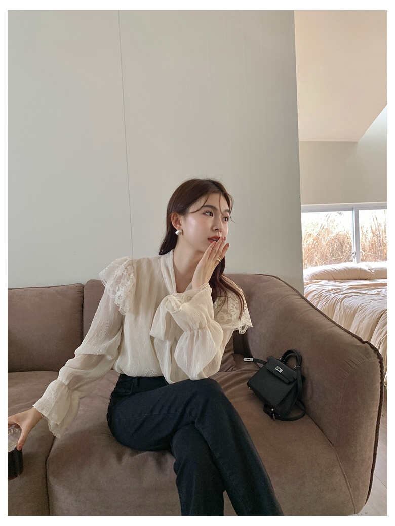 2023秋INS新作★カジュアル 韓国風 ピコットデザイン性 ベルスリープ 着心地抜群 ブラウス