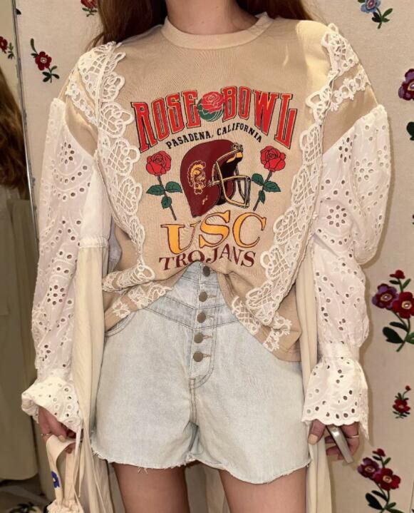 トップス トレーナー スウェット レース 切替 長袖 ブラウス 秋物
