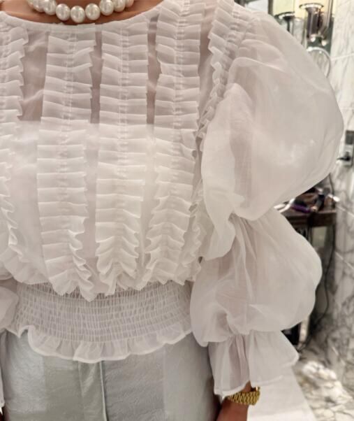 トップス シャツ カジュアルシャツ 長袖 フレア シフォン