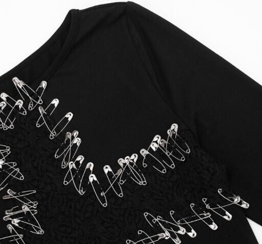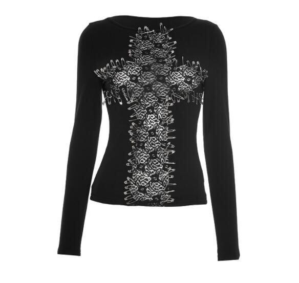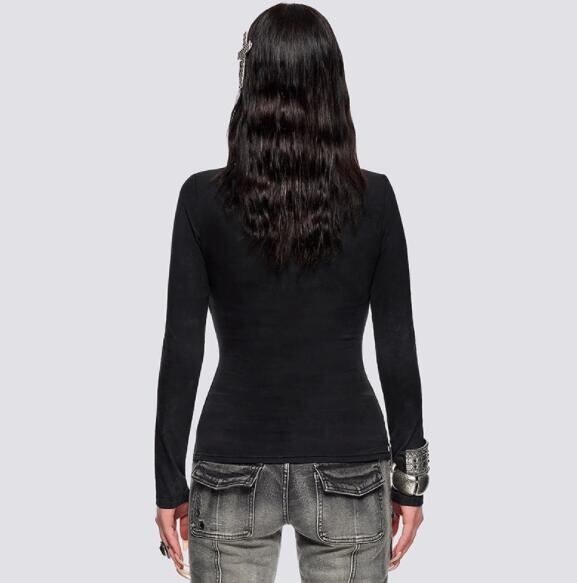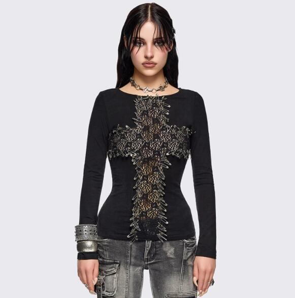 トップス Tシャツ ブラウス スリム 長袖 レース 暗黒系