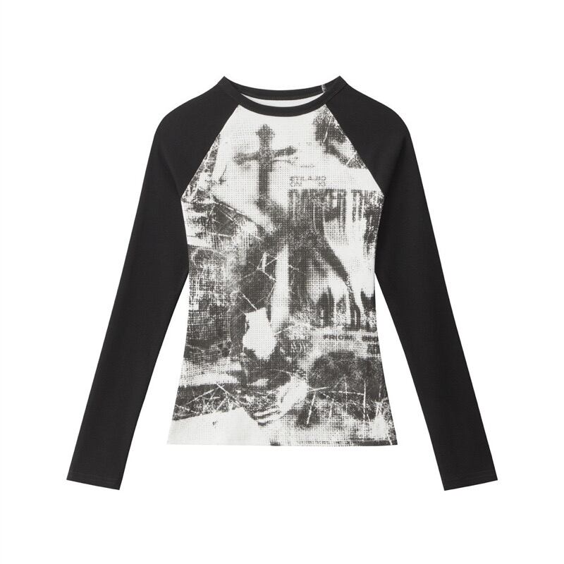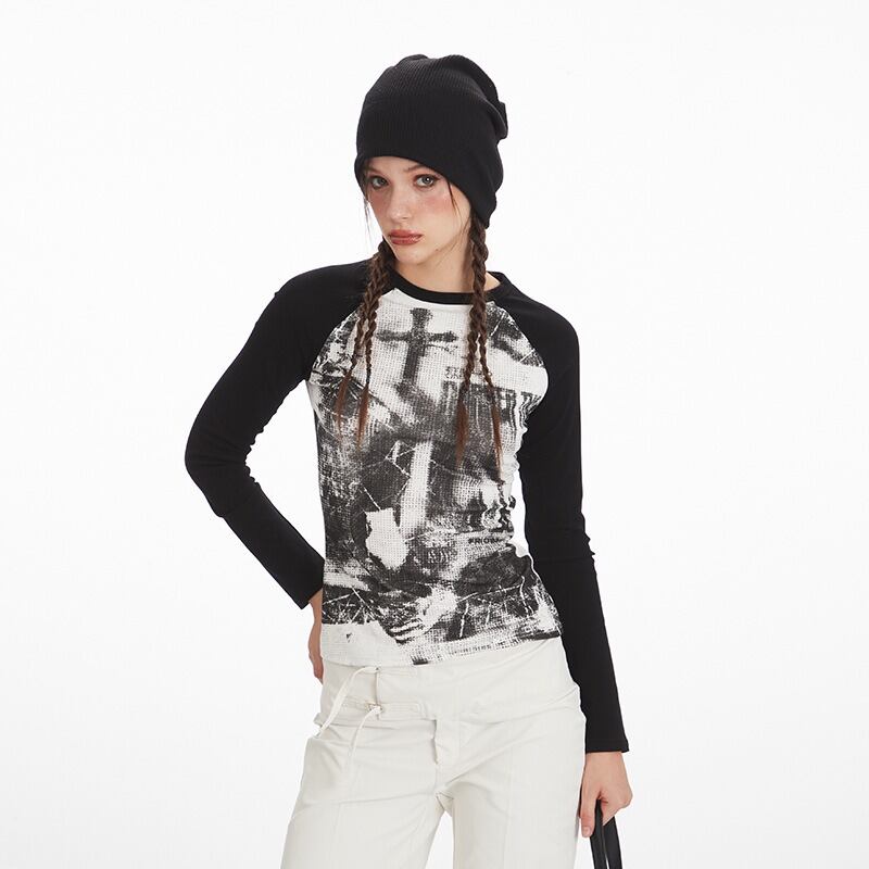 トップス カットソー Tシャツ プリント 長袖 ロンT クルーネック レディース