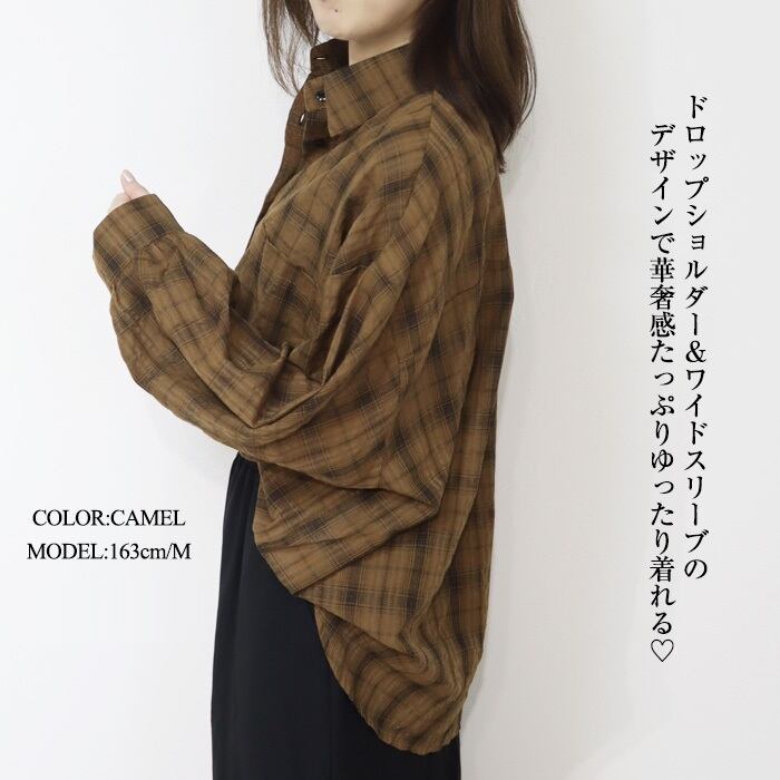 秋口にピタリ素材のチェックオーバーサイズシャツ