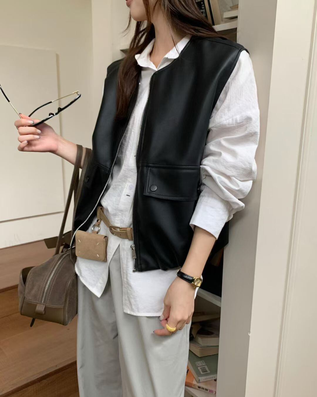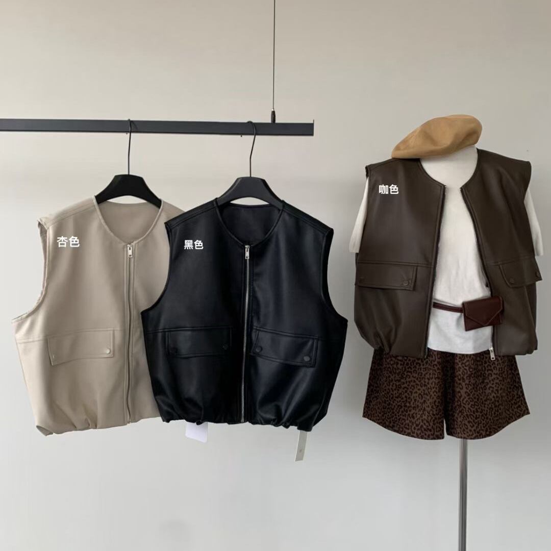 2025年INS 秋新作 韓国風 気質 おしゃれ レトロ レザー ベスト ジャケット