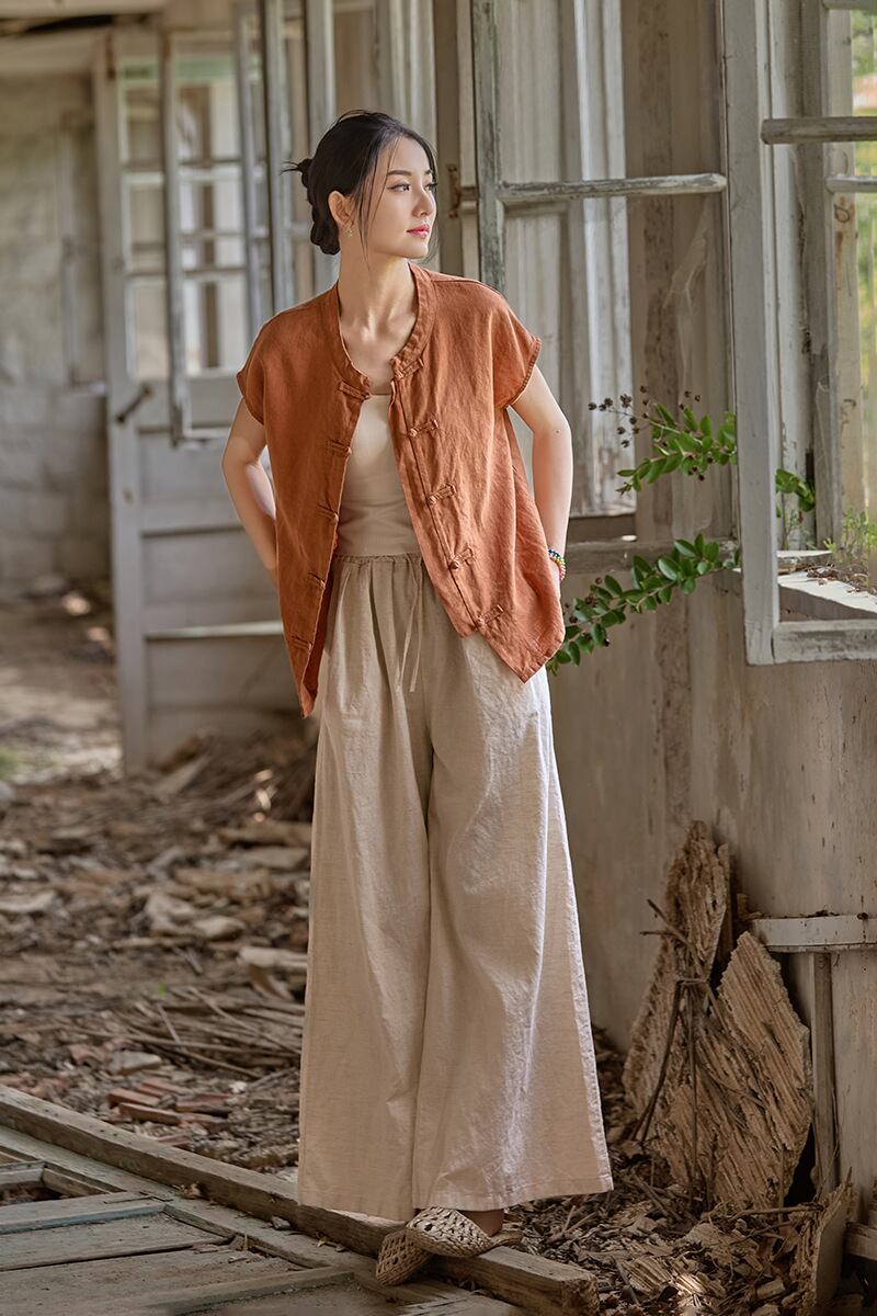 u28622トップス レディース ズボン パンツ ボトムス 無地 亜麻 カジュアル 2025夏新作