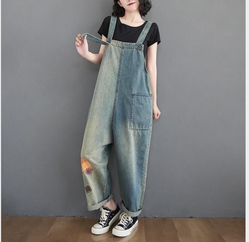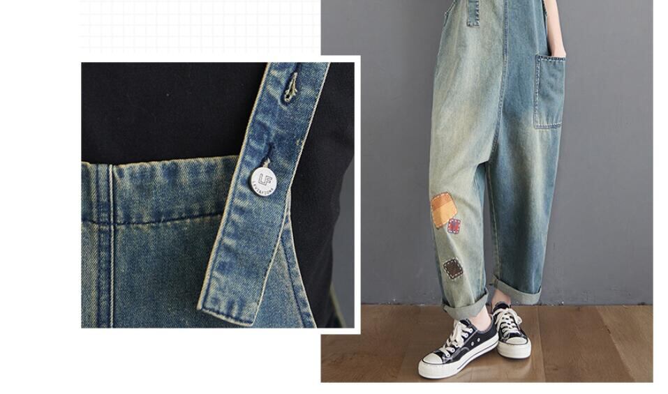 2021年の新しい秋のファッションパーソナリティカジュアルジーンズ韓国のよだれかけパンツ