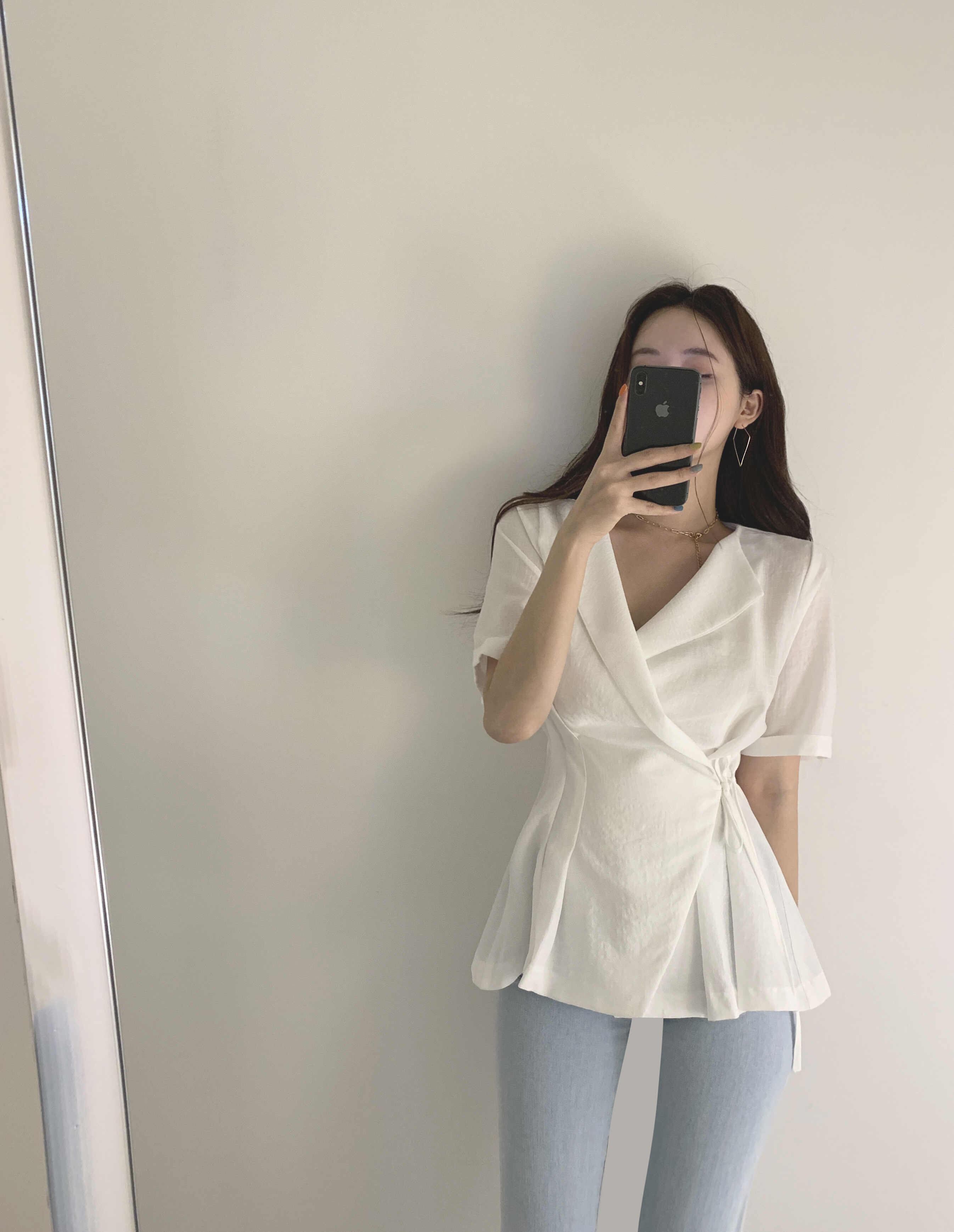2023夏INS新作★気質 韓国系 折り襟 トップス シャツ ブラウス スリム